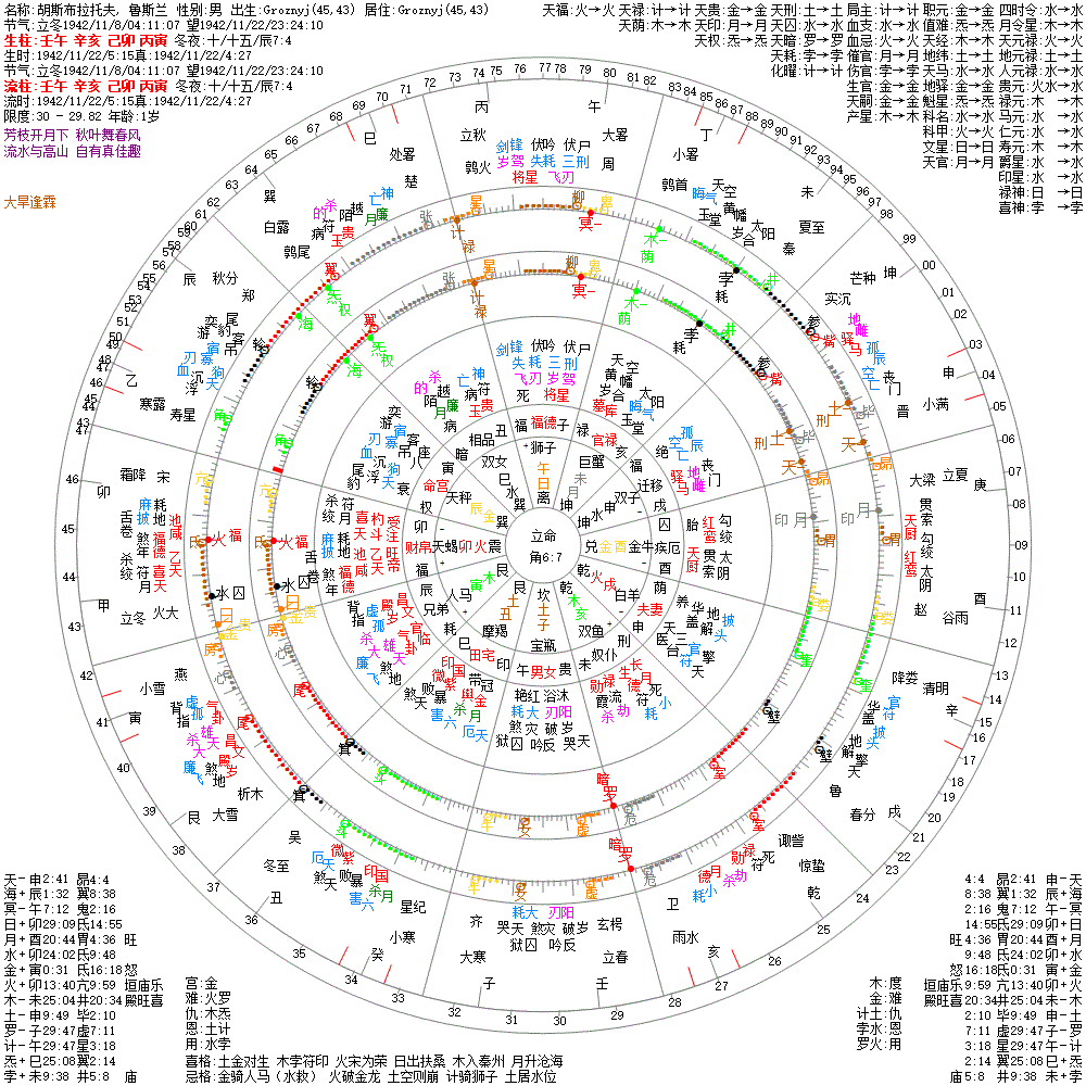 大运:壬子7 癸丑17 甲寅27 乙卯37 丙辰47 丁巳57 戊午67 己未77 庚申87 辛酉97