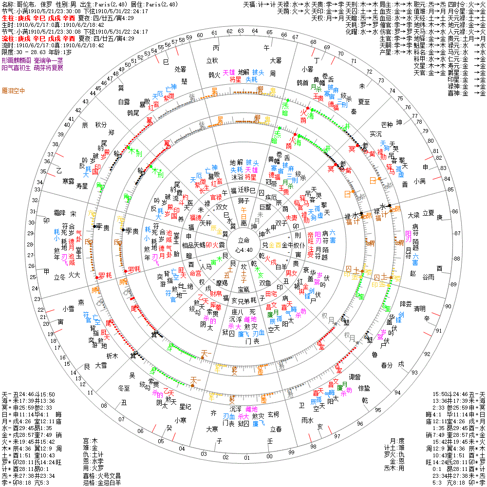 出生阳历:1910/6/2/17:0