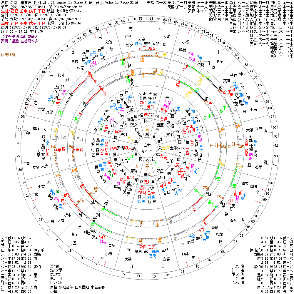 大运:辛未13 庚午23 己巳33 戊辰43 丁卯53 丙寅63 乙丑73 甲子83 癸亥93 壬戌103