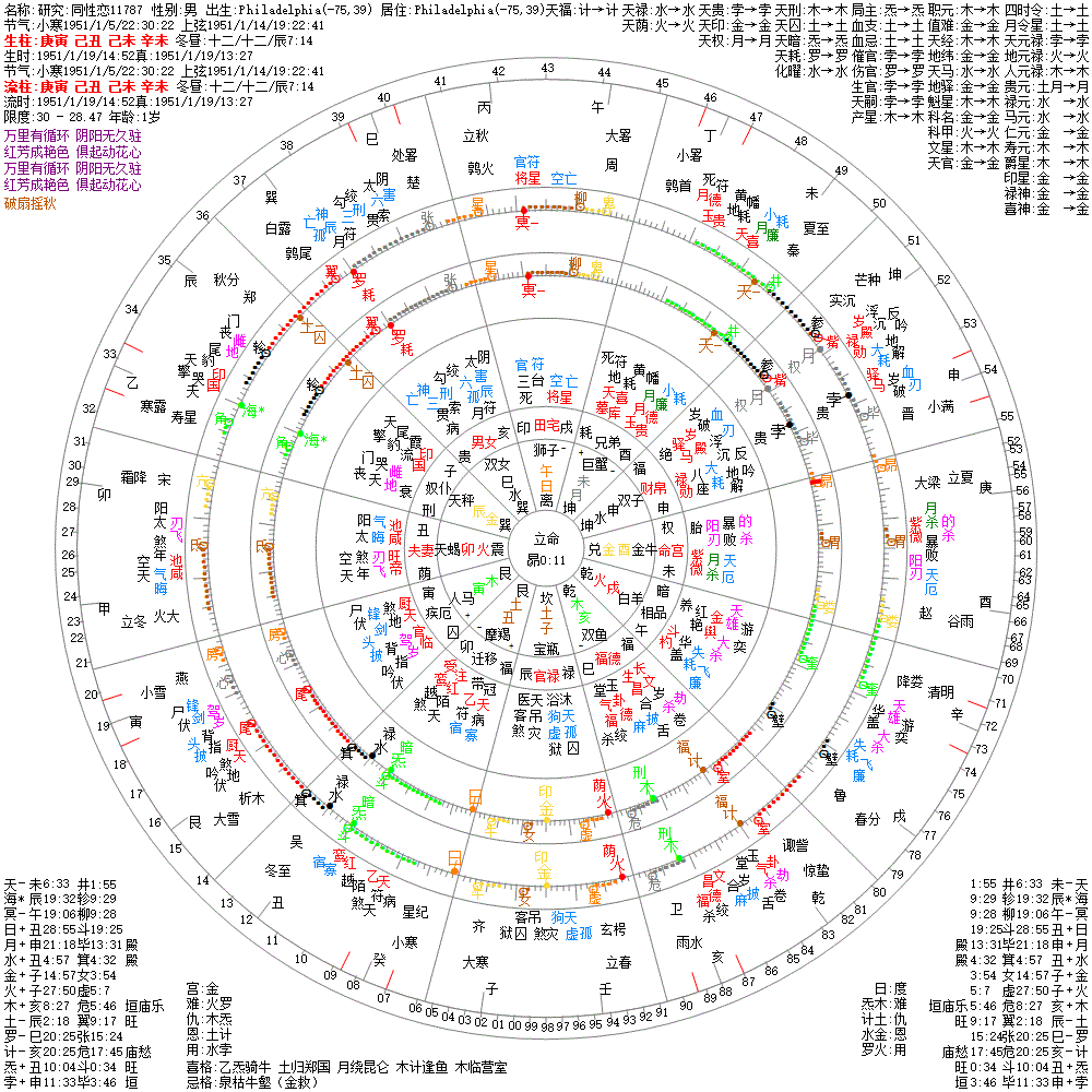 大运:庚寅7 辛卯17 壬辰27 癸巳37 甲午47 乙未57 丙申67 丁酉77 戊戌87 己亥97
