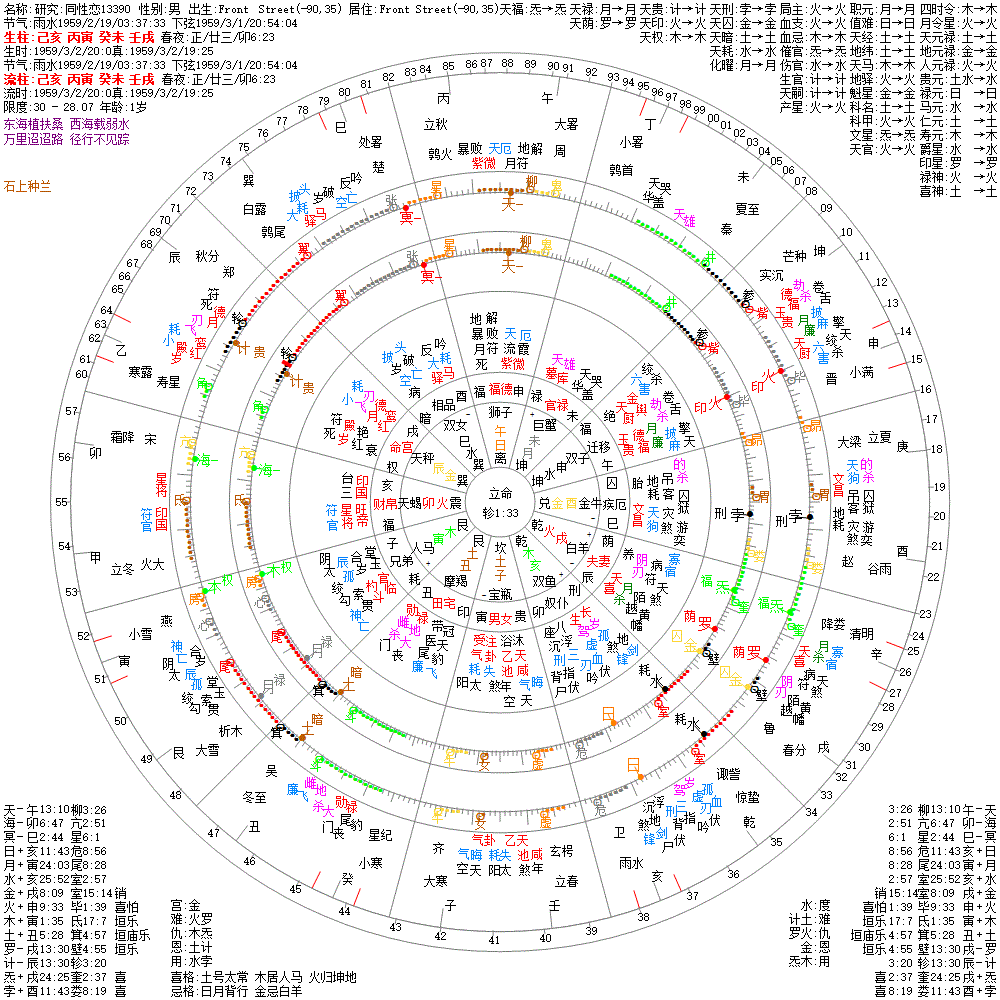 大运:乙丑10 甲子20 癸亥30 壬戌40 辛酉50 庚申60 己未70 戊午80 丁巳90 丙辰100
