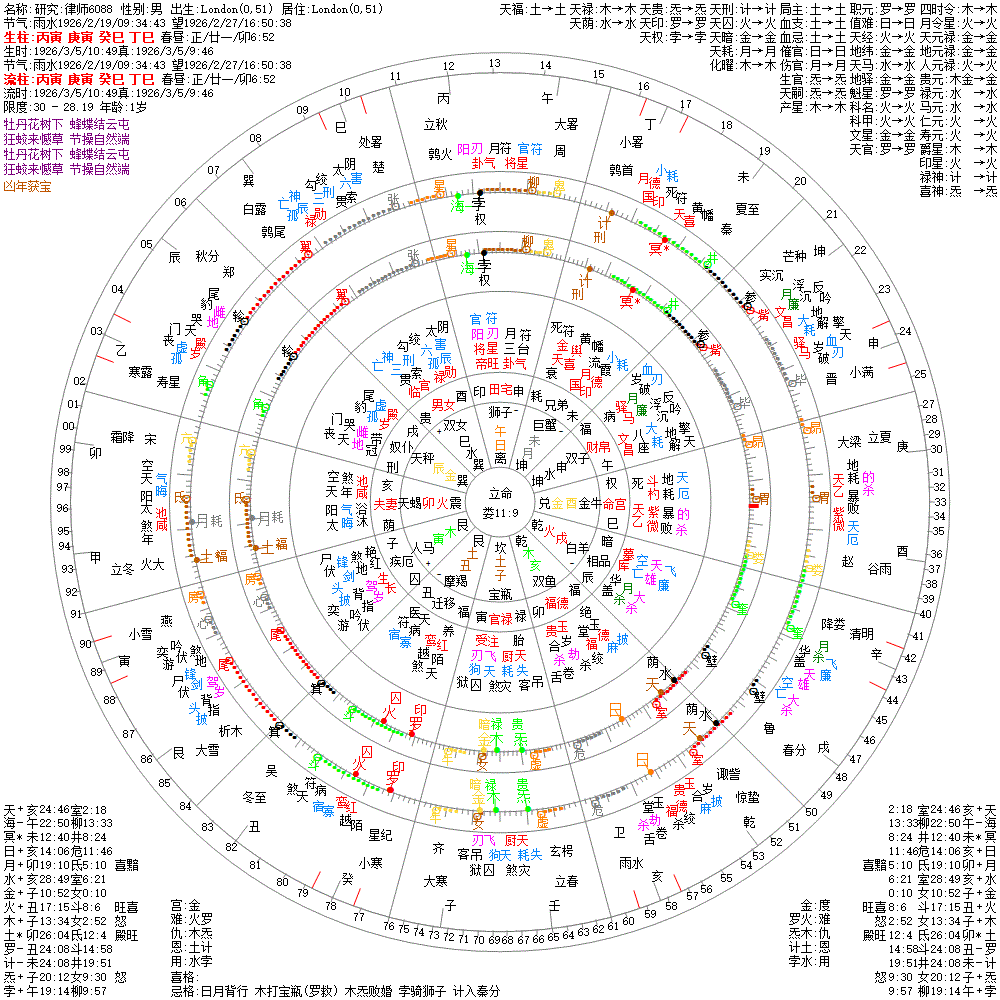 大运:辛卯2 壬辰12 癸巳22 甲午32 乙未42 丙申52 丁酉62 戊戌72 己亥82 庚子92