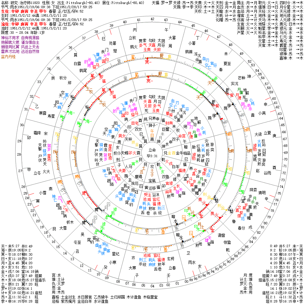大运:辛卯3 壬辰13 癸巳23 甲午33 乙未43 丙申53 丁酉63 戊戌73 己亥83 庚子93