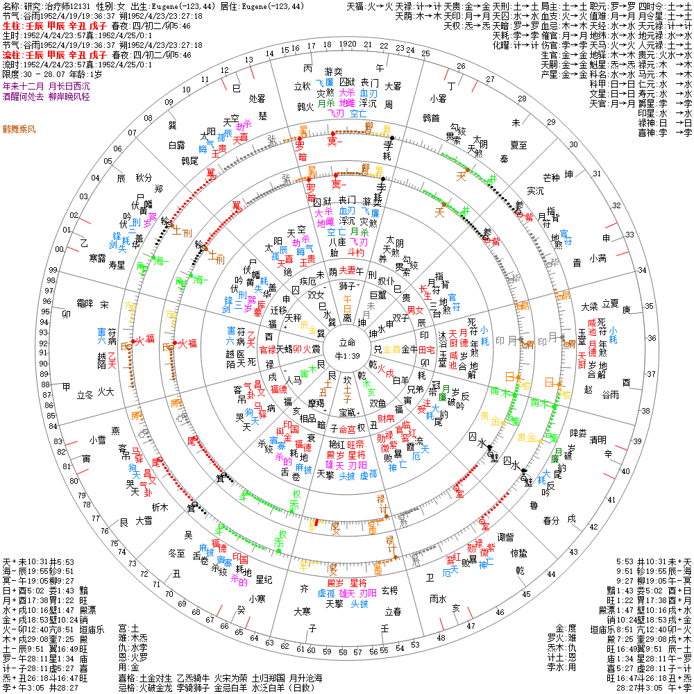 大运:癸卯8 壬寅18 辛丑28 庚子38 己亥48 戊戌58 丁酉68 丙申78 乙未88 甲午98