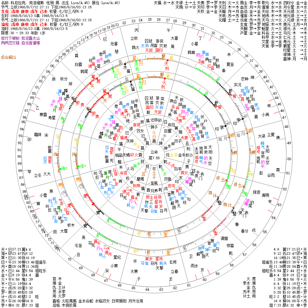 出生阳历:1968/8/16/13:0