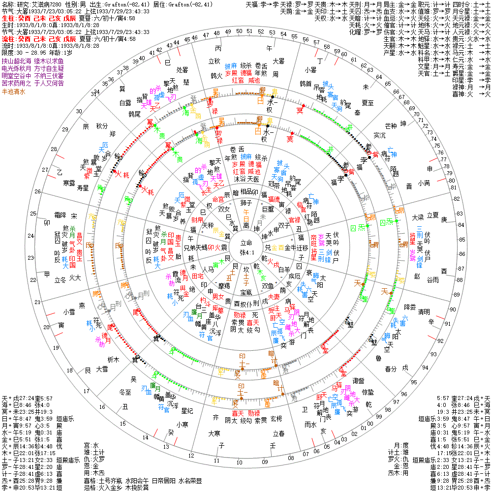 大运:戊午10 丁巳20 丙辰30 乙卯40 甲寅50 癸丑60 壬子70 辛亥80 庚戌90 己酉100