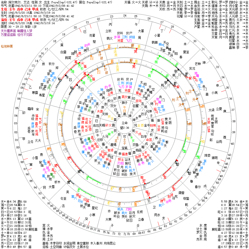大运:丁未10 丙午20 乙巳30 甲辰40 癸卯50 壬寅60 辛丑70 庚子80 己亥90 戊戌100