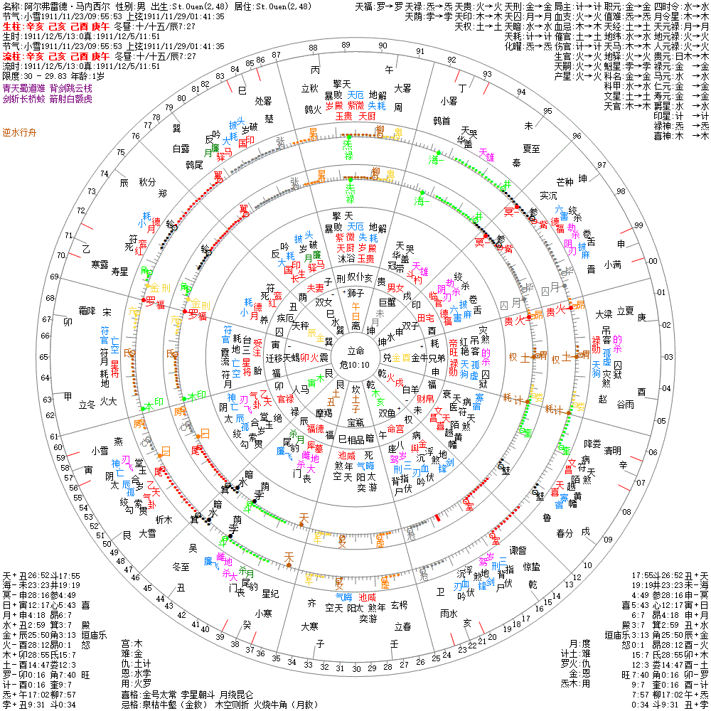 大运:戊戌10 丁酉20 丙申30 乙未40 甲午50 癸巳60 壬辰70 辛卯80 庚寅90 己丑100