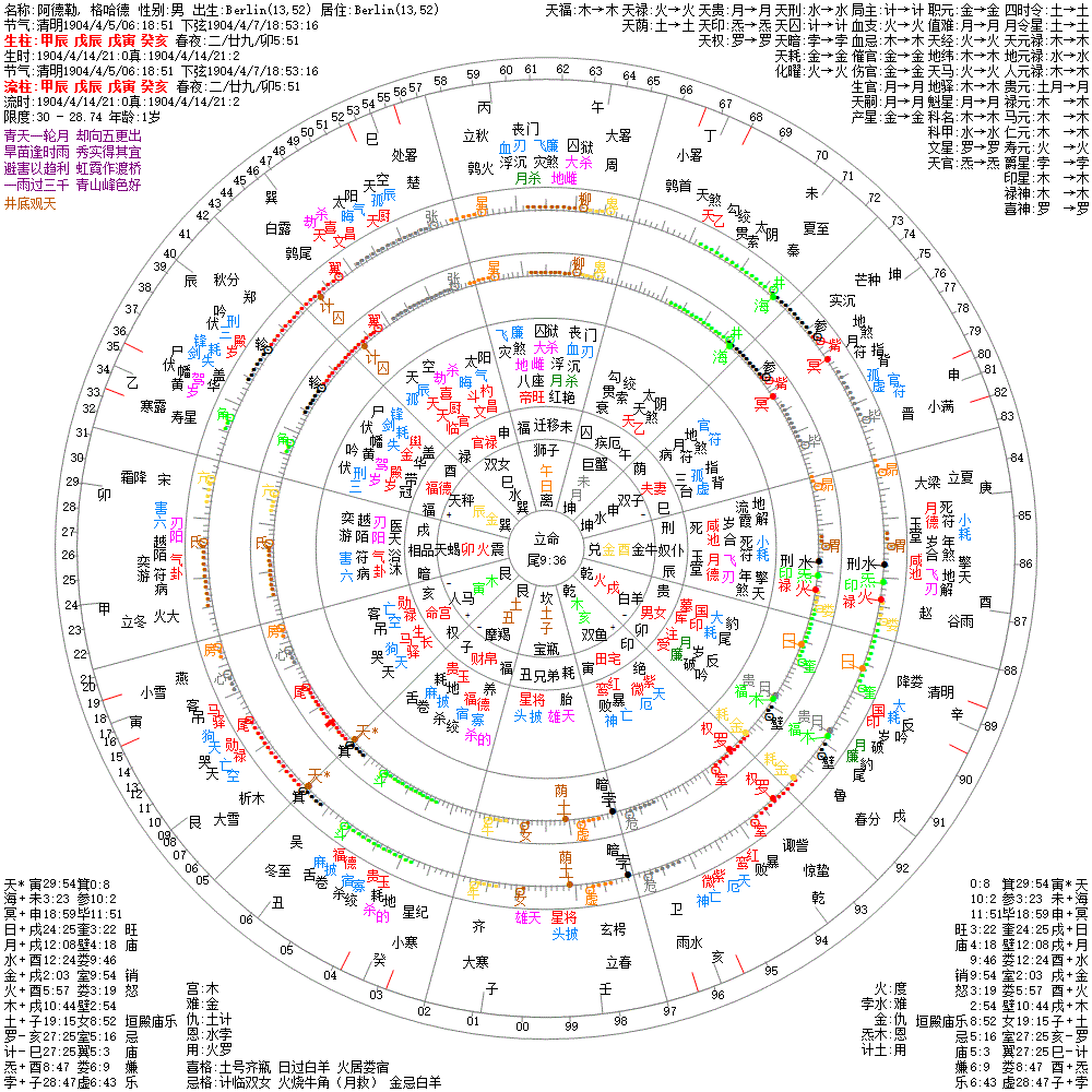 出生阳历:1904/4/14/21:0