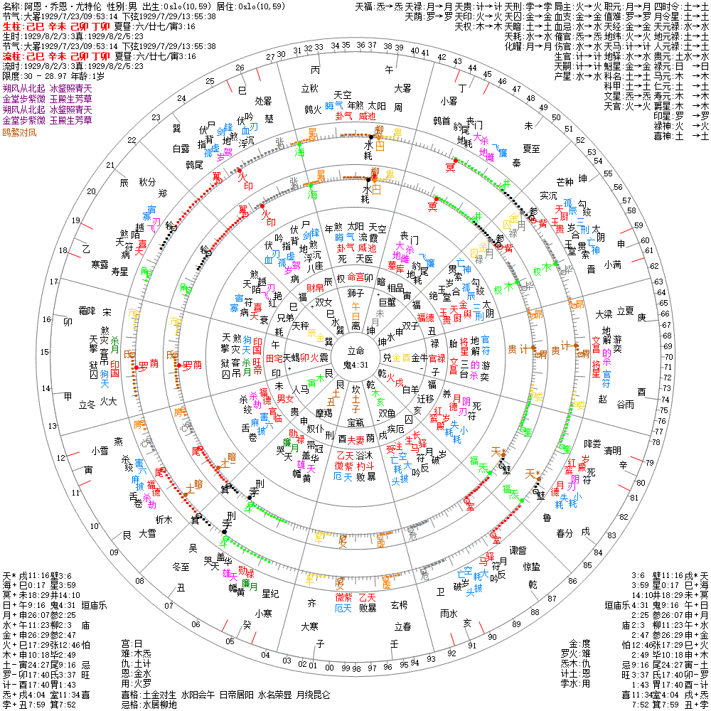 大运:庚午10 己巳20 戊辰30 丁卯40 丙寅50 乙丑60 甲子70 癸亥80 壬戌90 辛酉100