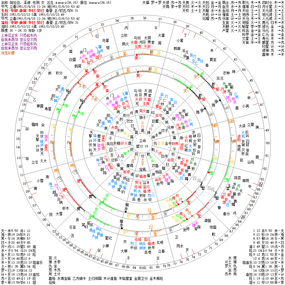 大运:辛卯10 壬辰20 癸巳30 甲午40 乙未50 丙申60 丁酉70 戊戌80 己亥90 庚子100