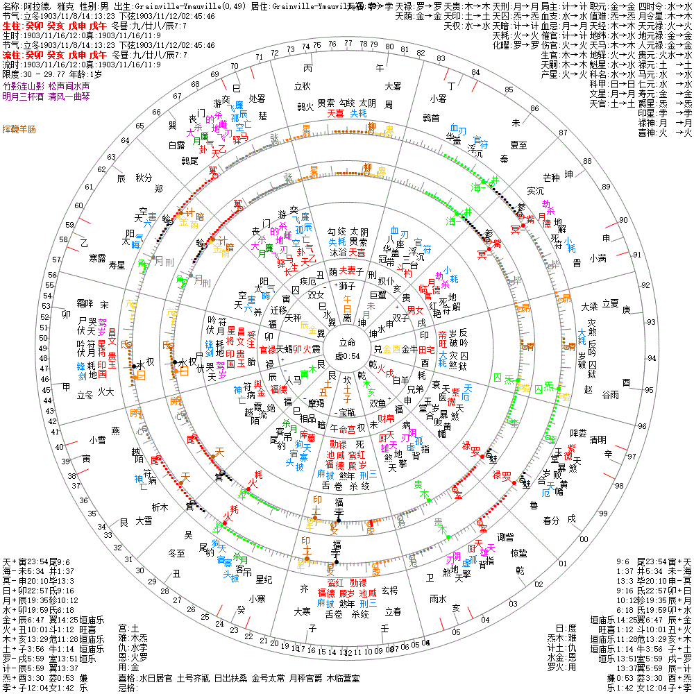大运:壬戌14 辛酉24 庚申34 己未44 戊午54 丁巳64 丙辰74 乙卯84 甲寅94 癸丑104