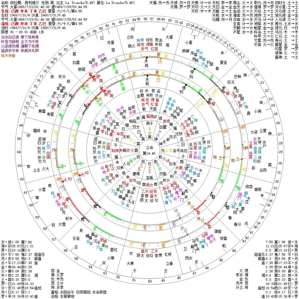 大运:庚午10 己巳20 戊辰30 丁卯40 丙寅50 乙丑60 甲子70 癸亥80 壬戌90 辛酉100