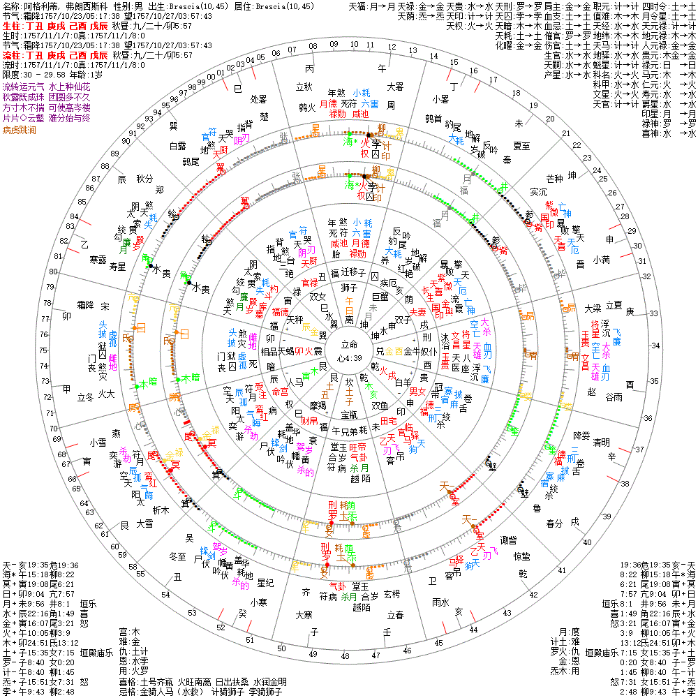 大运:己酉10 戊申20 丁未30 丙午40 乙巳50 甲辰60 癸卯70 壬寅80 辛丑90 庚子100