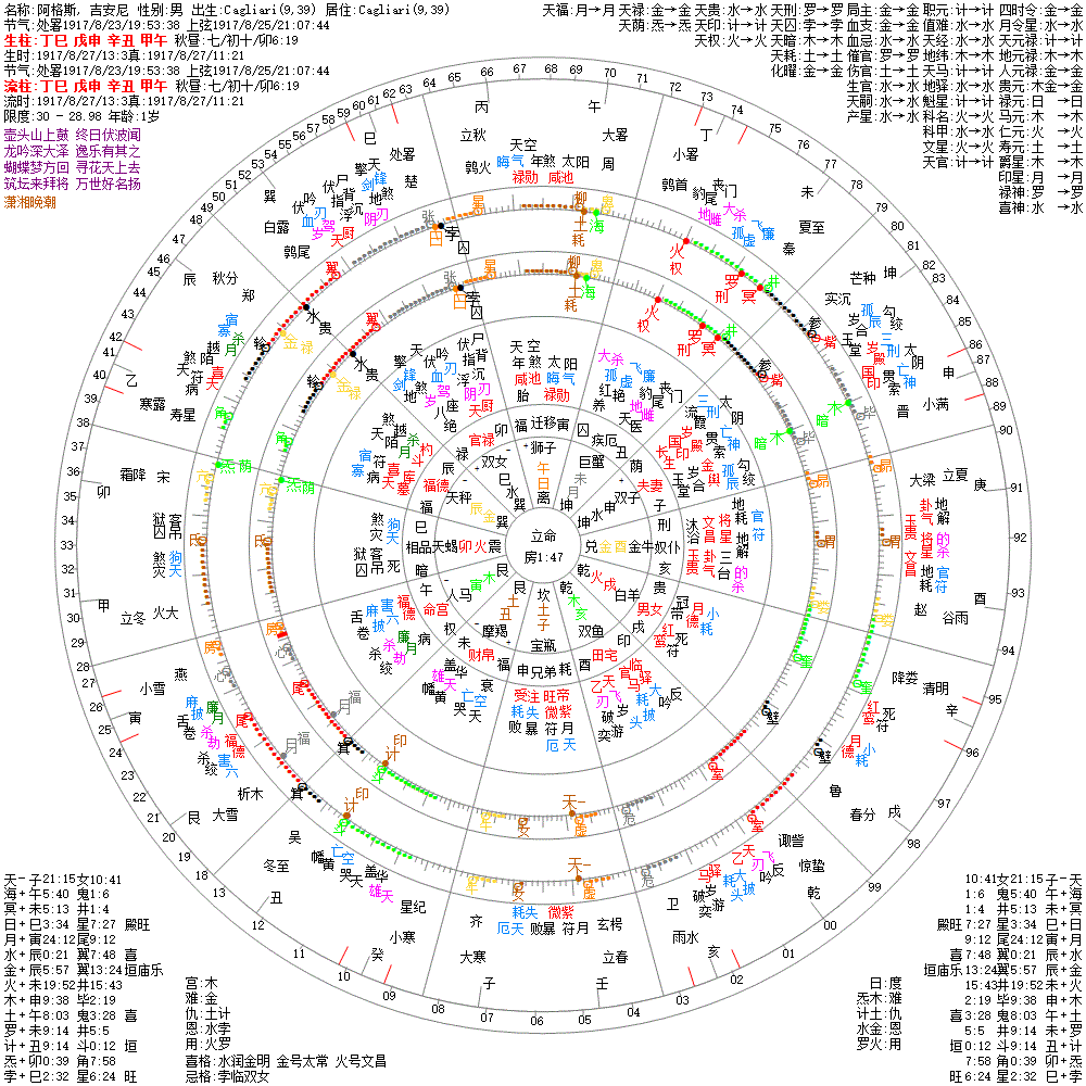 大运:丁未8 丙午18 乙巳28 甲辰38 癸卯48 壬寅58 辛丑68 庚子78 己亥88 戊戌98