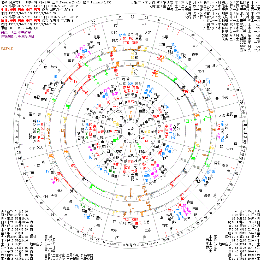 出生阳历:1933/7/14/3:0