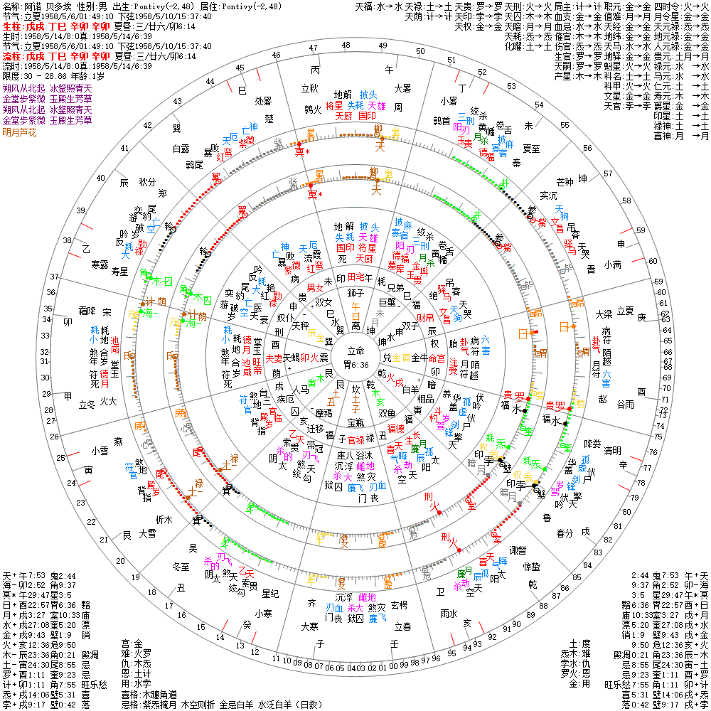 大运:戊午9 己未19 庚申29 辛酉39 壬戌49 癸亥59 甲子69 乙丑79 丙寅89 丁卯99