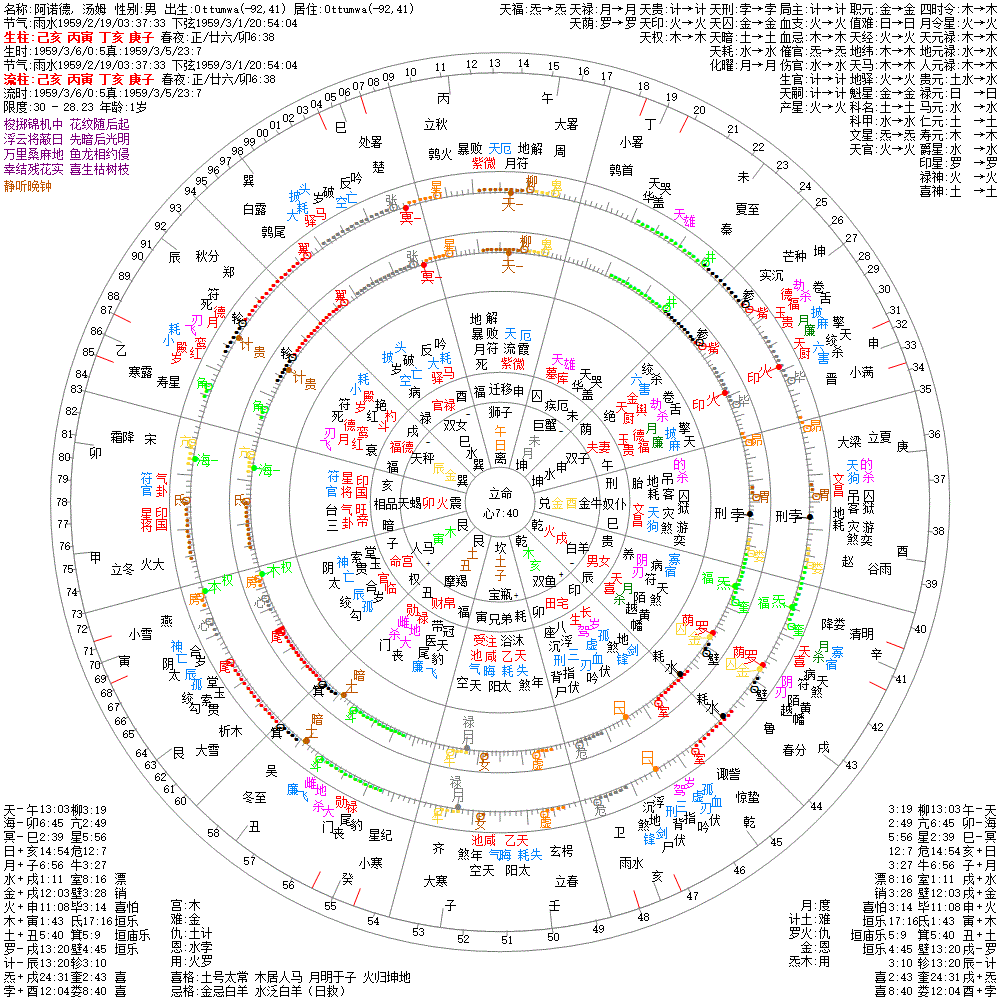 大运:乙丑11 甲子21 癸亥31 壬戌41 辛酉51 庚申61 己未71 戊午81 丁巳91 丙辰101