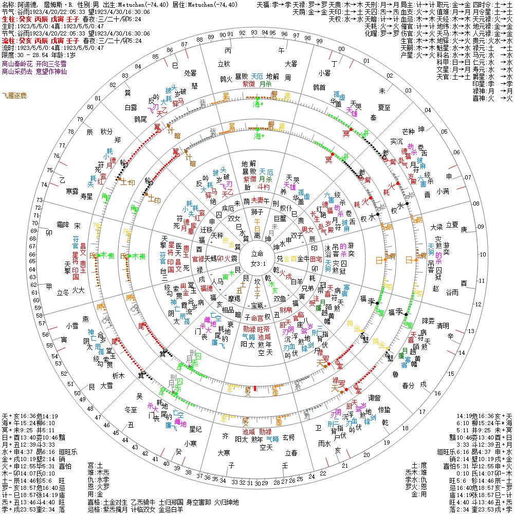 小运:辛亥1 庚戌2 己酉3 戊申4 丁未5 丙午6 乙巳7 甲辰8 癸卯9 壬寅10