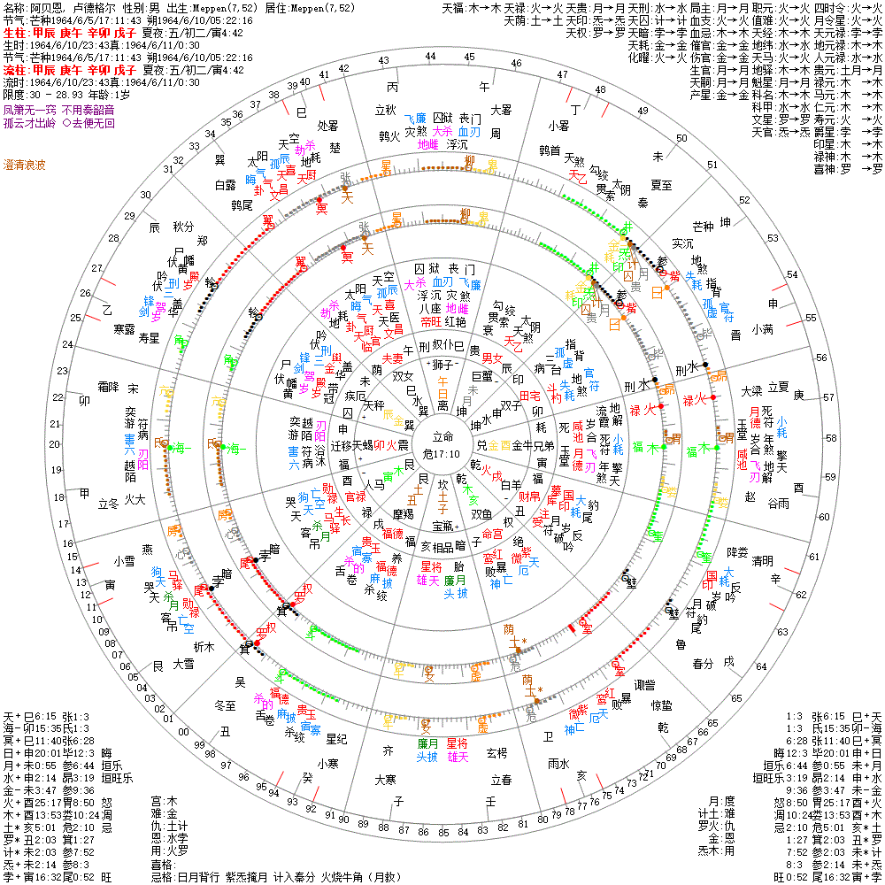 出生阳历:1964/6/10/23:43