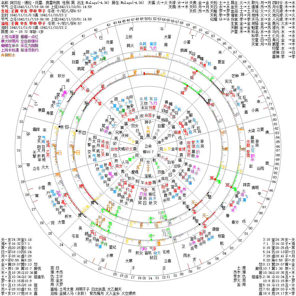 大运:壬子10 癸丑20 甲寅30 乙卯40 丙辰50 丁巳60 戊午70 己未80 庚申90 辛酉100