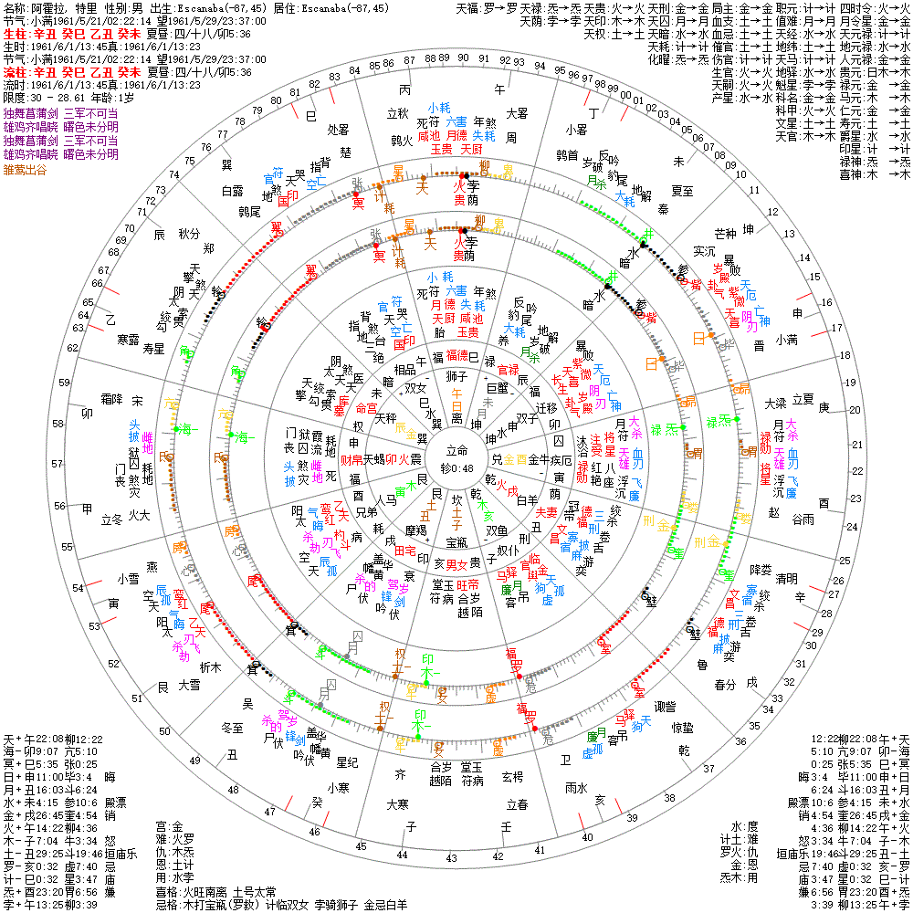 出生阳历:1961/6/1/13:45