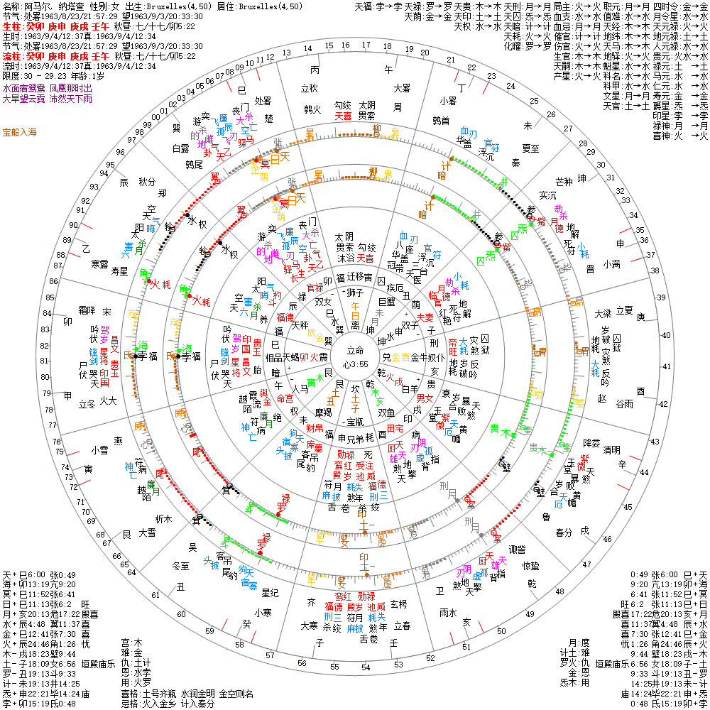 大运:辛酉3 壬戌13 癸亥23 甲子33 乙丑43 丙寅53 丁卯63 戊辰73 己巳83 庚午93