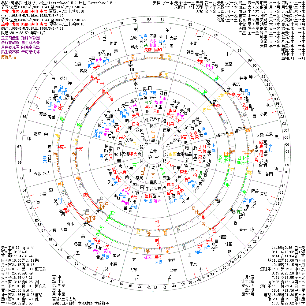 小运:己卯1 戊寅2 丁丑3 丙子4 乙亥5 甲戌6 癸酉7 壬申8 辛未9 庚午10 己巳11
