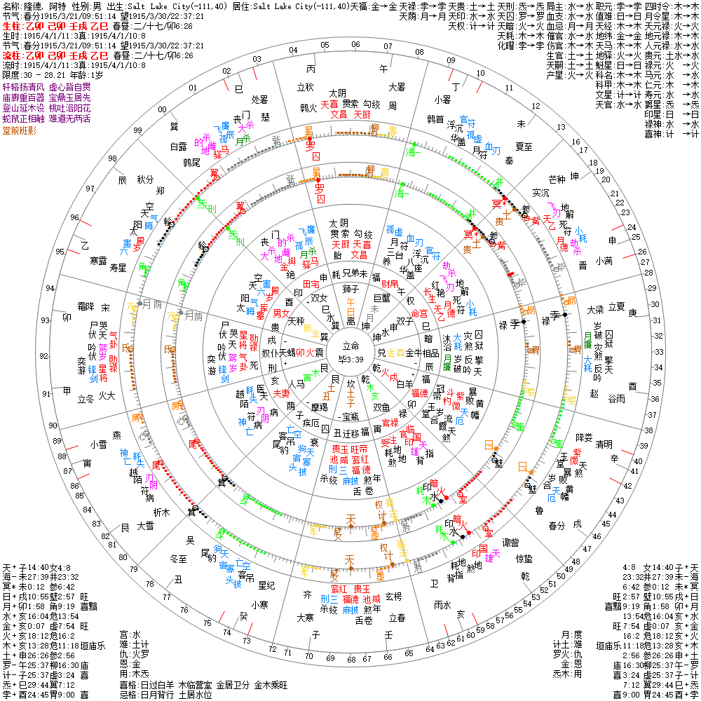 大运:戊寅10 丁丑20 丙子30 乙亥40 甲戌50 癸酉60 壬申70 辛未80 庚午90 己巳100