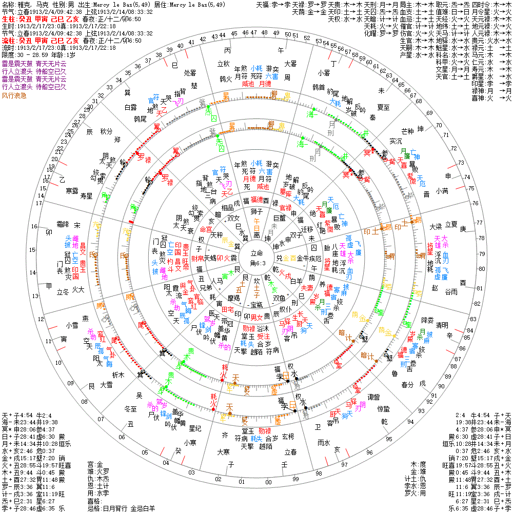 大运:癸丑16 壬子26 辛亥36 庚戌46 己酉56 戊申66 丁未76 丙午86 乙巳96 甲辰106