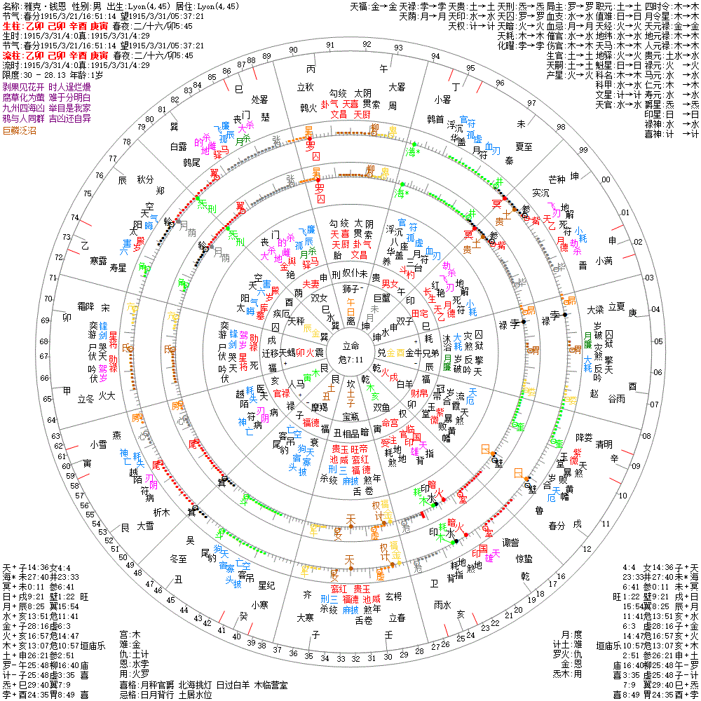 大运:戊寅10 丁丑20 丙子30 乙亥40 甲戌50 癸酉60 壬申70 辛未80 庚午90 己巳100