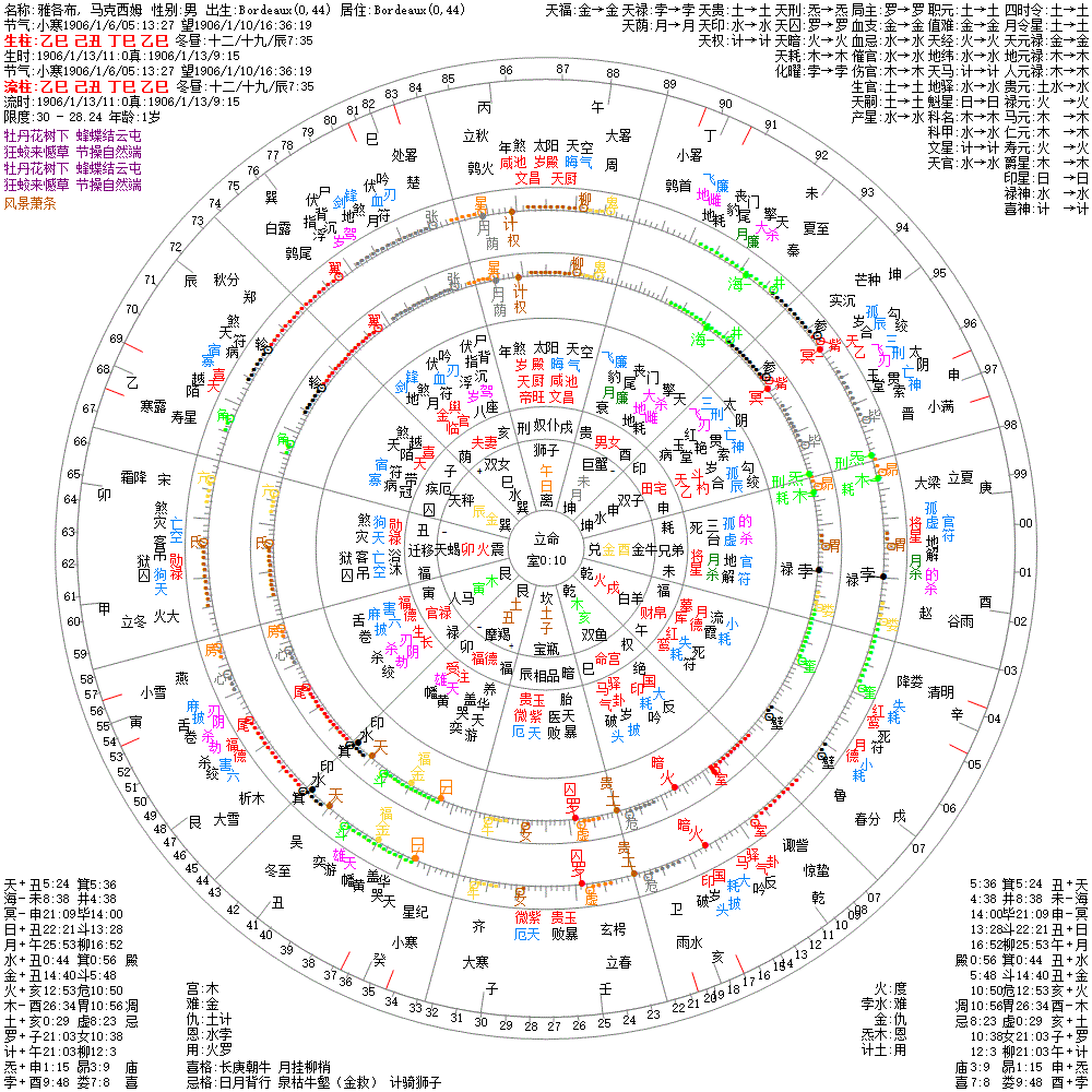 出生阳历:1906/1/13/11:0