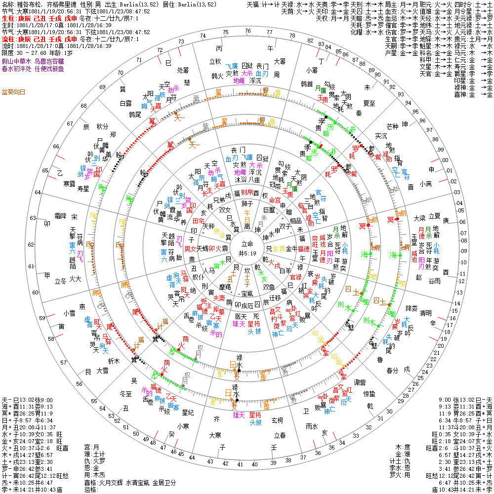 大运:庚寅3 辛卯13 壬辰23 癸巳33 甲午43 乙未53 丙申63 丁酉73 戊戌83 己亥93
