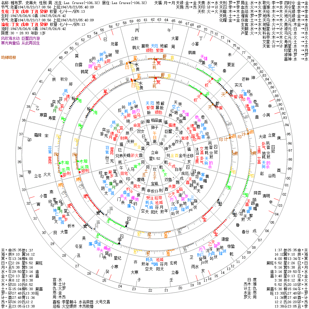 大运:丁未8 丙午18 乙巳28 甲辰38 癸卯48 壬寅58 辛丑68 庚子78 己亥88 戊戌98