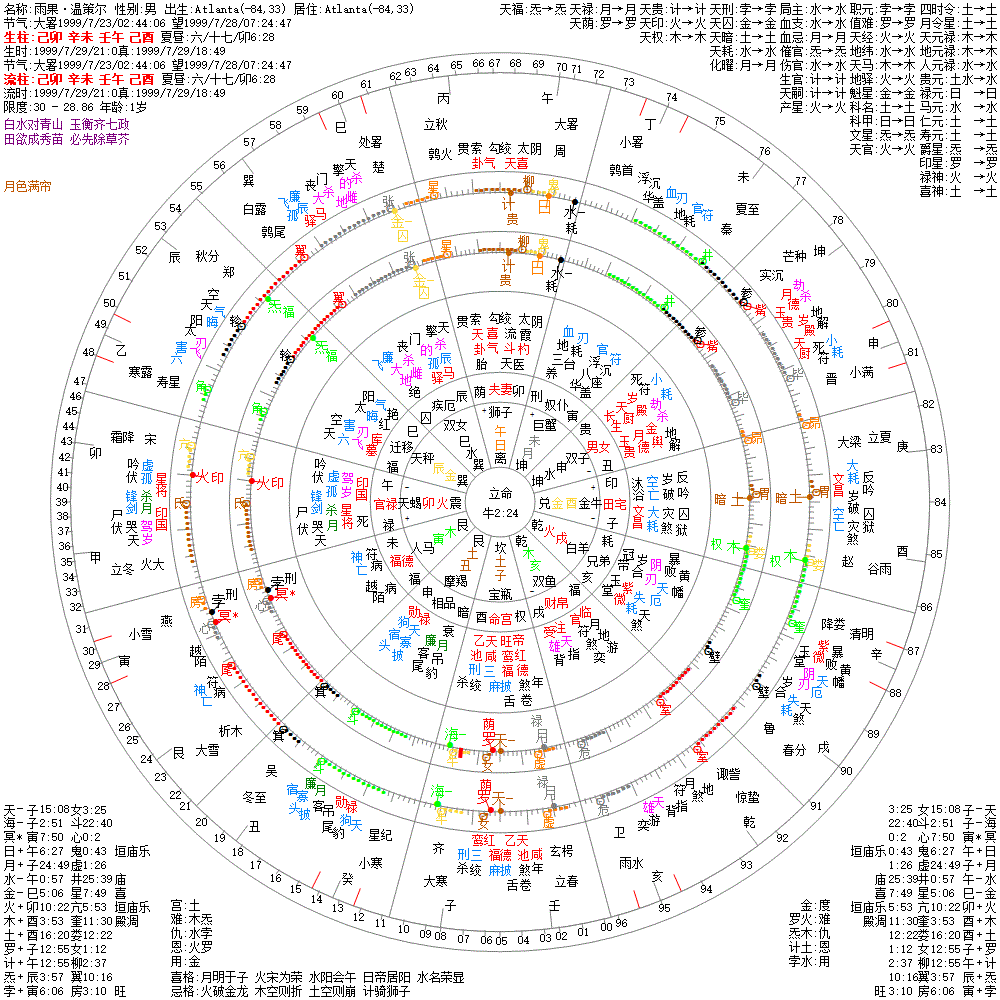 大运:庚午9 己巳19 戊辰29 丁卯39 丙寅49 乙丑59 甲子69 癸亥79 壬戌89 辛酉99