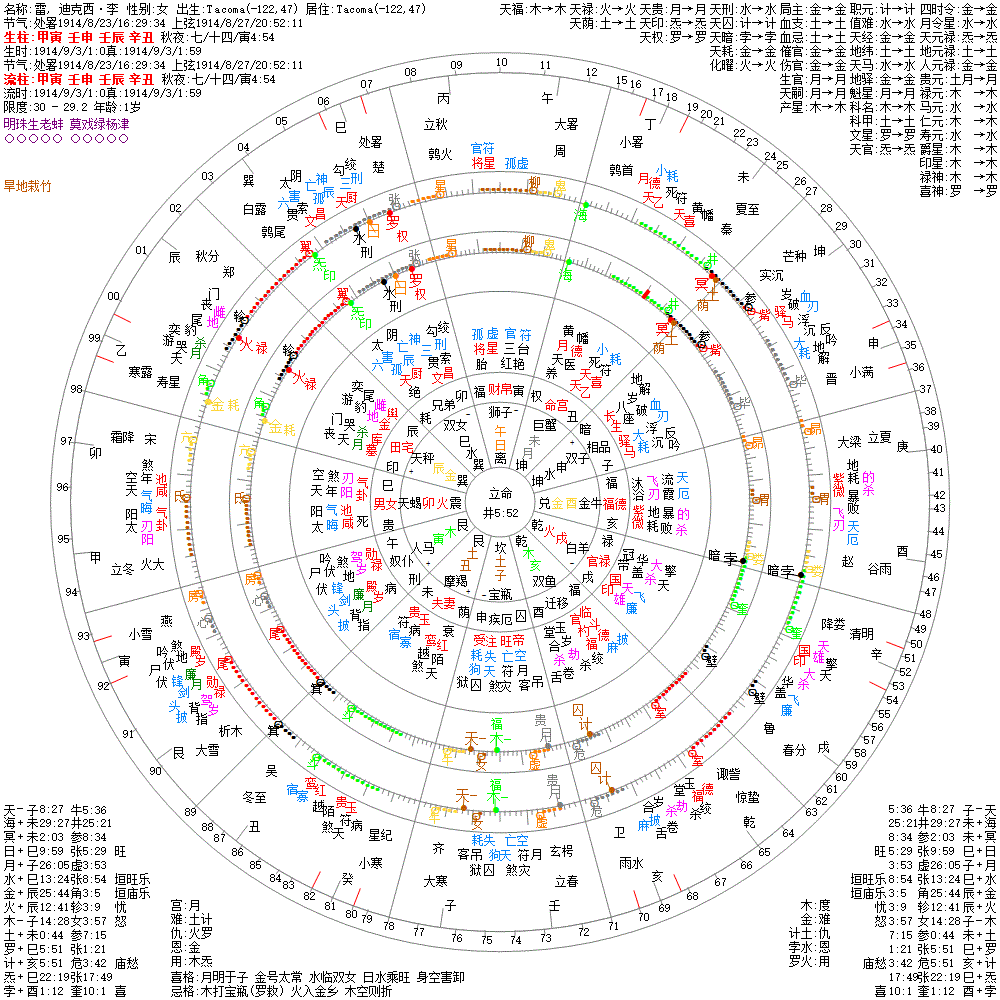 大运:辛未10 庚午20 己巳30 戊辰40 丁卯50 丙寅60 乙丑70 甲子80 癸亥90 壬戌100