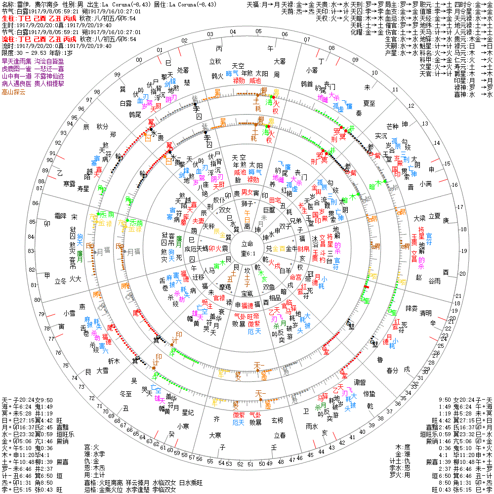 大运:戊申16 丁未26 丙午36 乙巳46 甲辰56 癸卯66 壬寅76 辛丑86 庚子96 己亥106