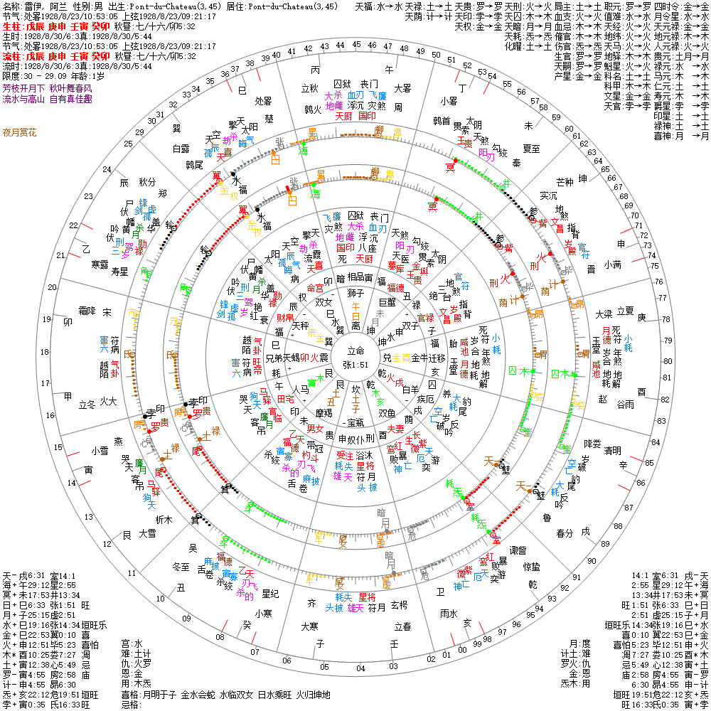 大运:辛酉4 壬戌14 癸亥24 甲子34 乙丑44 丙寅54 丁卯64 戊辰74 己巳84 庚午94