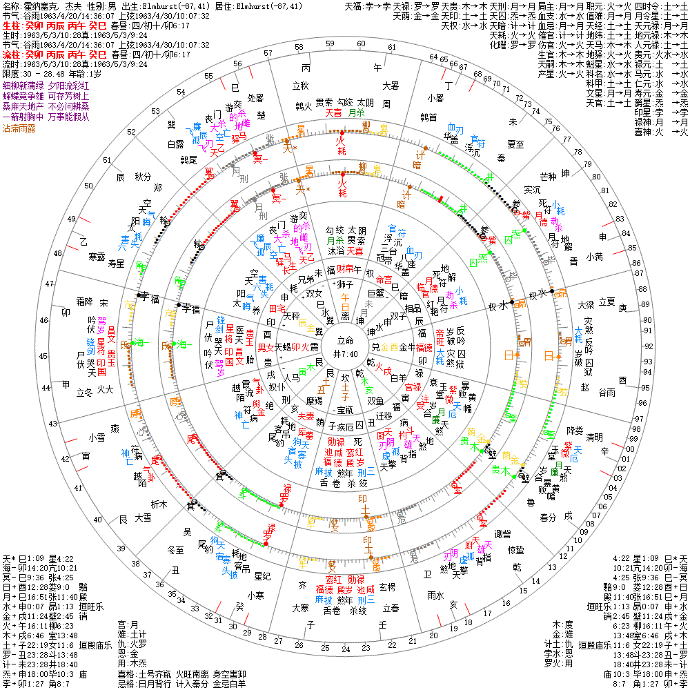 大运:乙卯11 甲寅21 癸丑31 壬子41 辛亥51 庚戌61 己酉71 戊申81 丁未91 丙午101