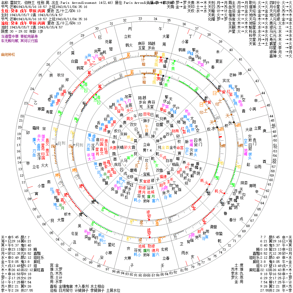 小运:乙丑1 甲子2 癸亥3 壬戌4 辛酉5 庚申6 己未7 戊午8 丁巳9 丙辰10 乙卯11 甲寅12 癸丑13 壬子14