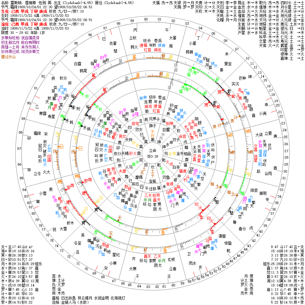 大运:癸酉10 壬申20 辛未30 庚午40 己巳50 戊辰60 丁卯70 丙寅80 乙丑90 甲子100