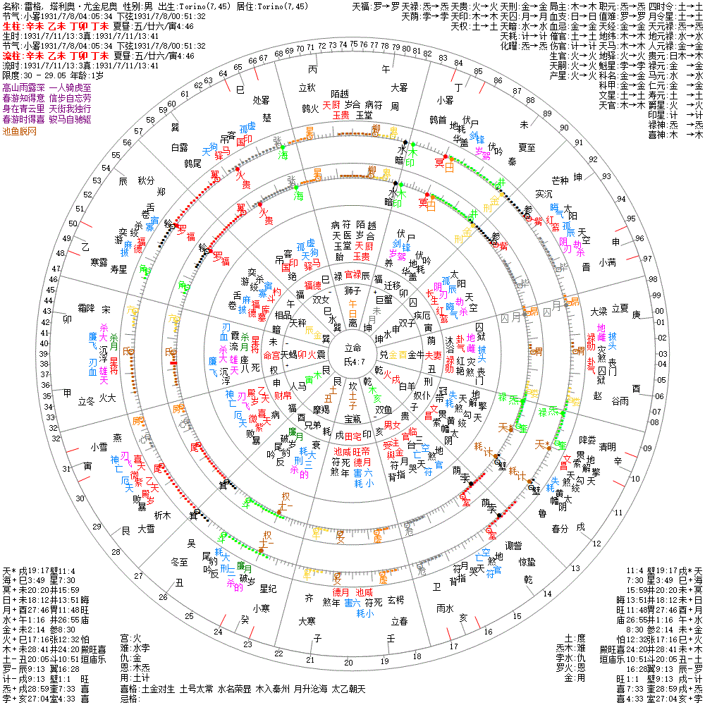 出生阳历:1931/7/11/13:3