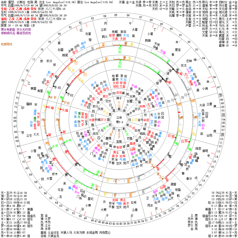 太乙抱鬼:孛在月前为抱鬼,则不可救矣,必外假尊重,内实娇淫。以月为用星,整个宫限凶,孤劫随身,身宫亦不清矣!日生尤可,夜生则更甚矣!夜生女命见孛在月前最差。不论男女,最怕孛在月前,「月孛厥心淫毒」。