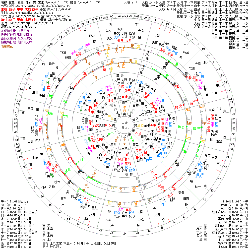 小运:己未1 庚申2 辛酉3 壬戌4 癸亥5 甲子6 乙丑7 丙寅8 丁卯9 戊辰10 己巳11