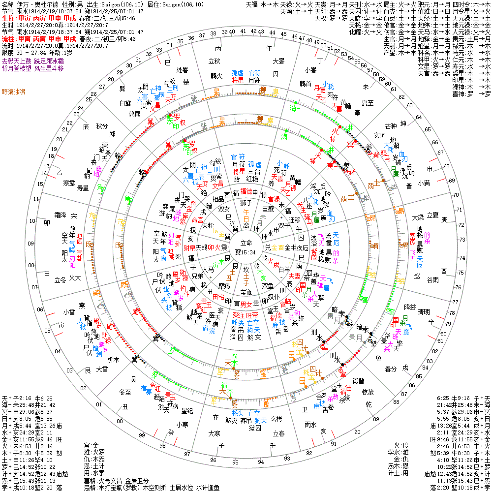 大运:丁卯4 戊辰14 己巳24 庚午34 辛未44 壬申54 癸酉64 甲戌74 乙亥84 丙子94