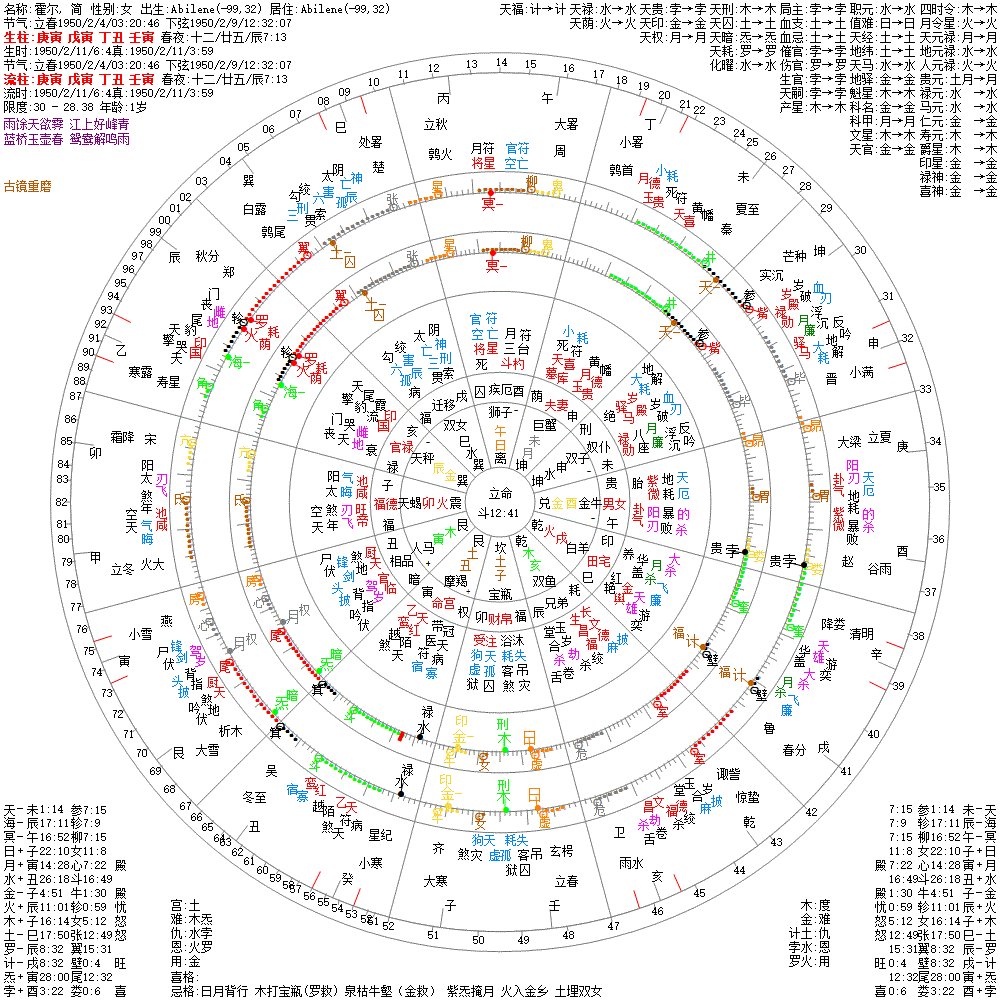 小运:辛丑1 庚子2 己亥3 戊戌4 丁酉5 丙申6 乙未7 甲午8 癸巳9 壬辰10 辛卯11 庚寅12 己丑13