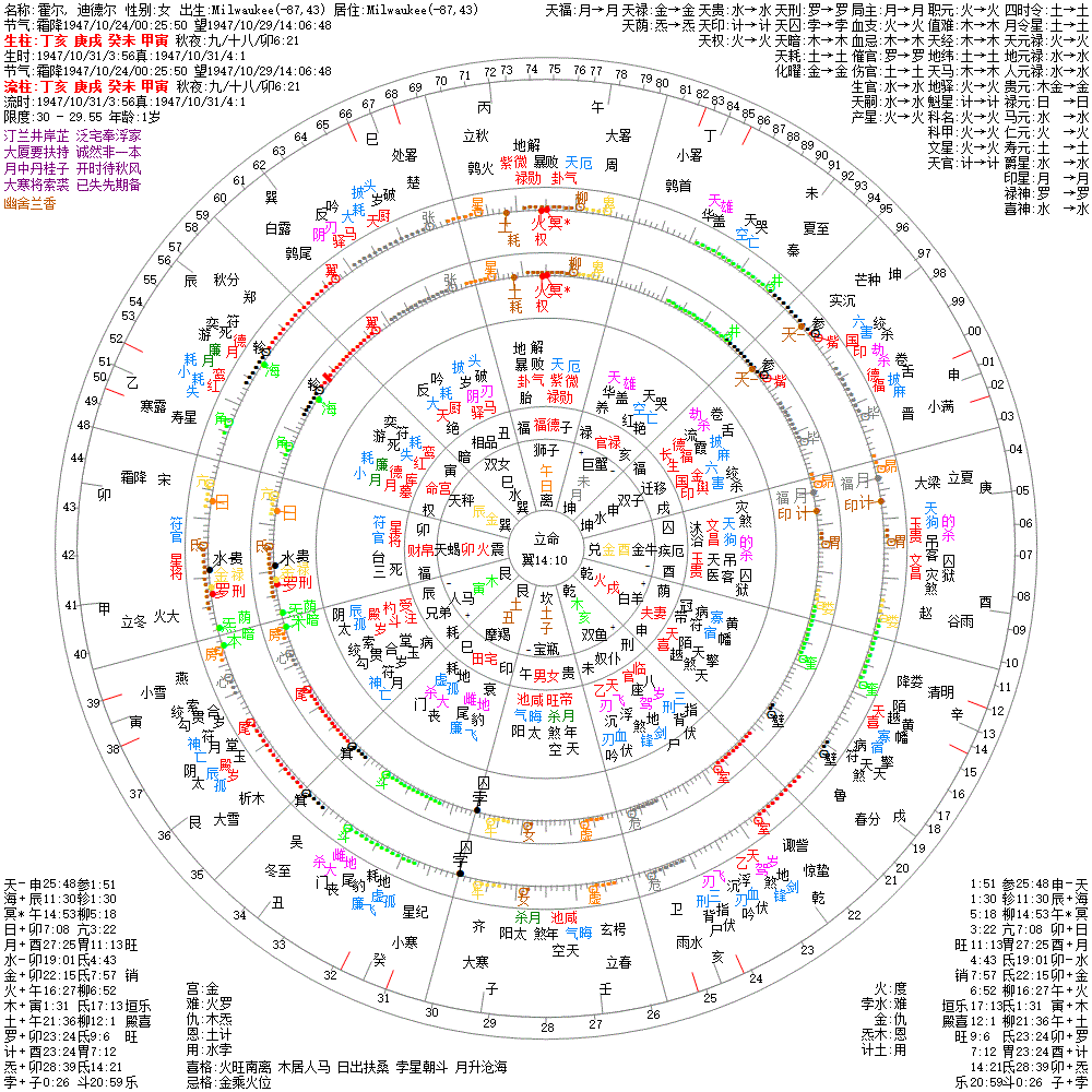 大运:辛亥4 壬子14 癸丑24 甲寅34 乙卯44 丙辰54 丁巳64 戊午74 己未84 庚申94