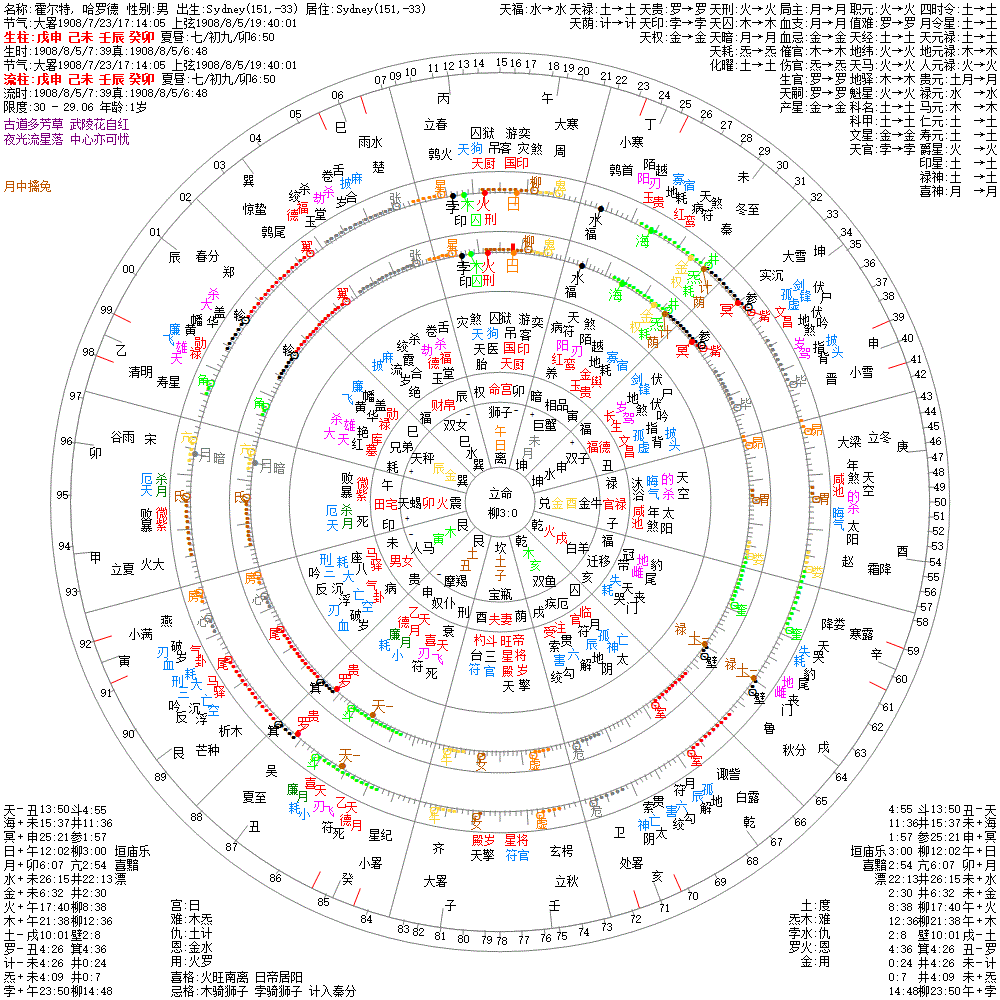 大运:庚申3 辛酉13 壬戌23 癸亥33 甲子43 乙丑53 丙寅63 丁卯73 戊辰83 己巳93