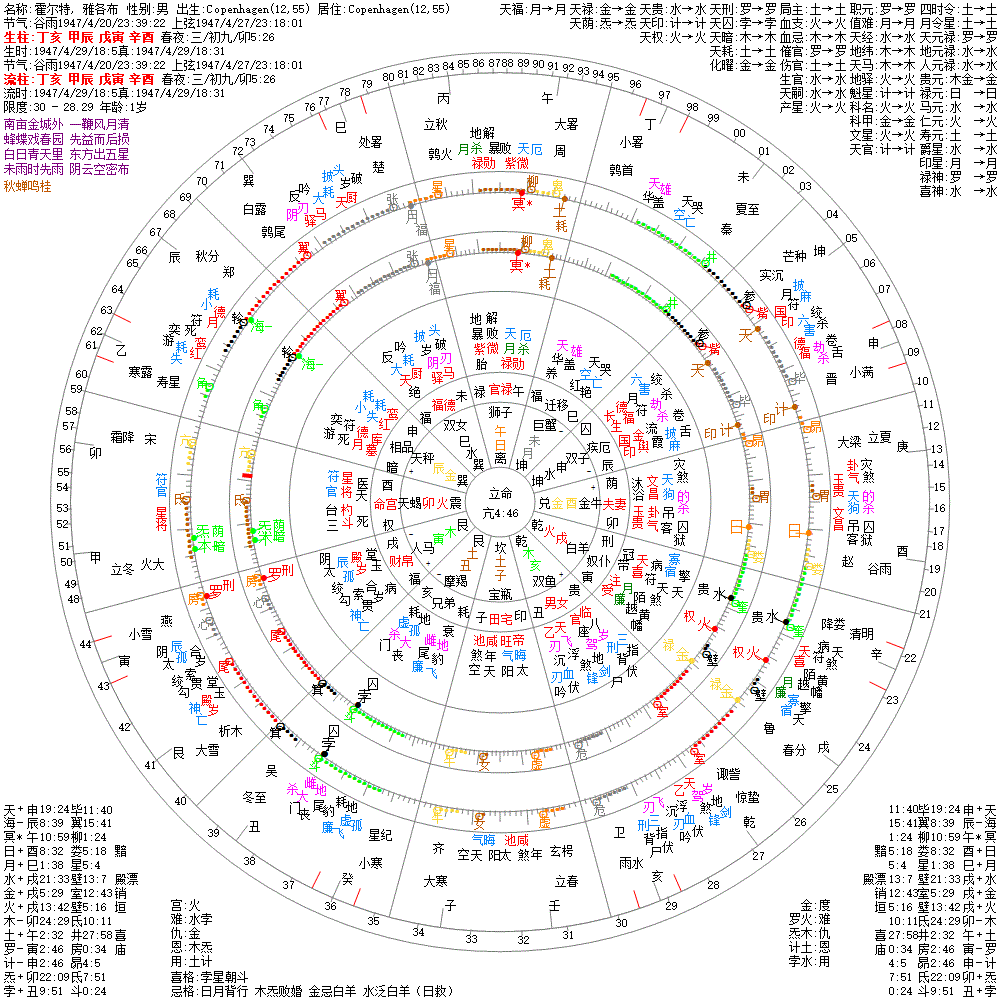 大运:癸卯10 壬寅20 辛丑30 庚子40 己亥50 戊戌60 丁酉70 丙申80 乙未90 甲午100