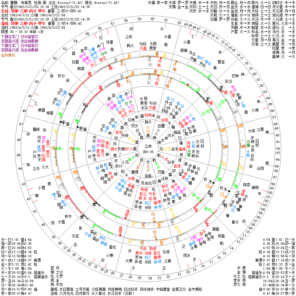 大运:甲寅11 癸丑21 壬子31 辛亥41 庚戌51 己酉61 戊申71 丁未81 丙午91 乙巳101